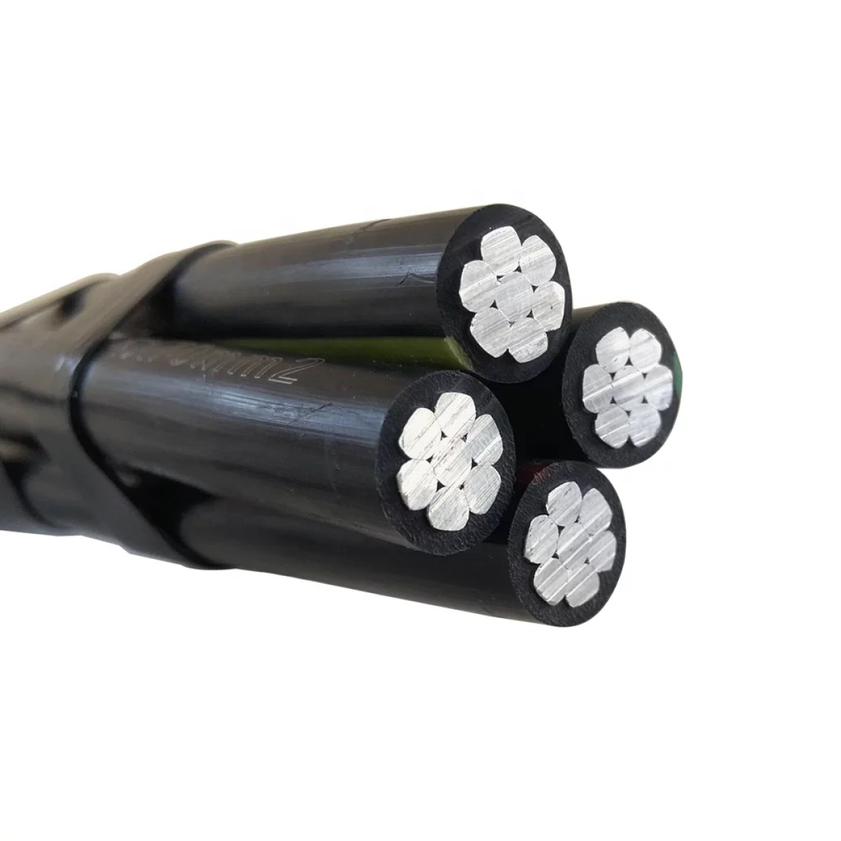Conductor de aluminio duro cableado clase 2. Aislamiento con polietileno reticulado (XLPE) color negro resistente a la intemperie, cada fase identificada por medio de nervaduras extruidas en forma longitudinal. Reunión alrededor de un elemento portante resistente a la tracción de aleación de aluminio. posee 1, 2 o 3 conductores por fase, más un conductor adicional para alumbrado público.